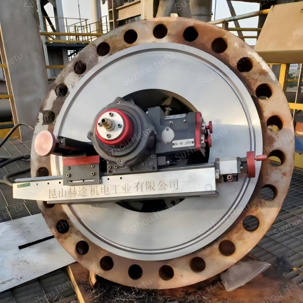 HT1000MM is an internally mounted flange facing machine that clamps quickly onto the inner bore of the flange, covering a repair diameter range of 152–1016 mm.